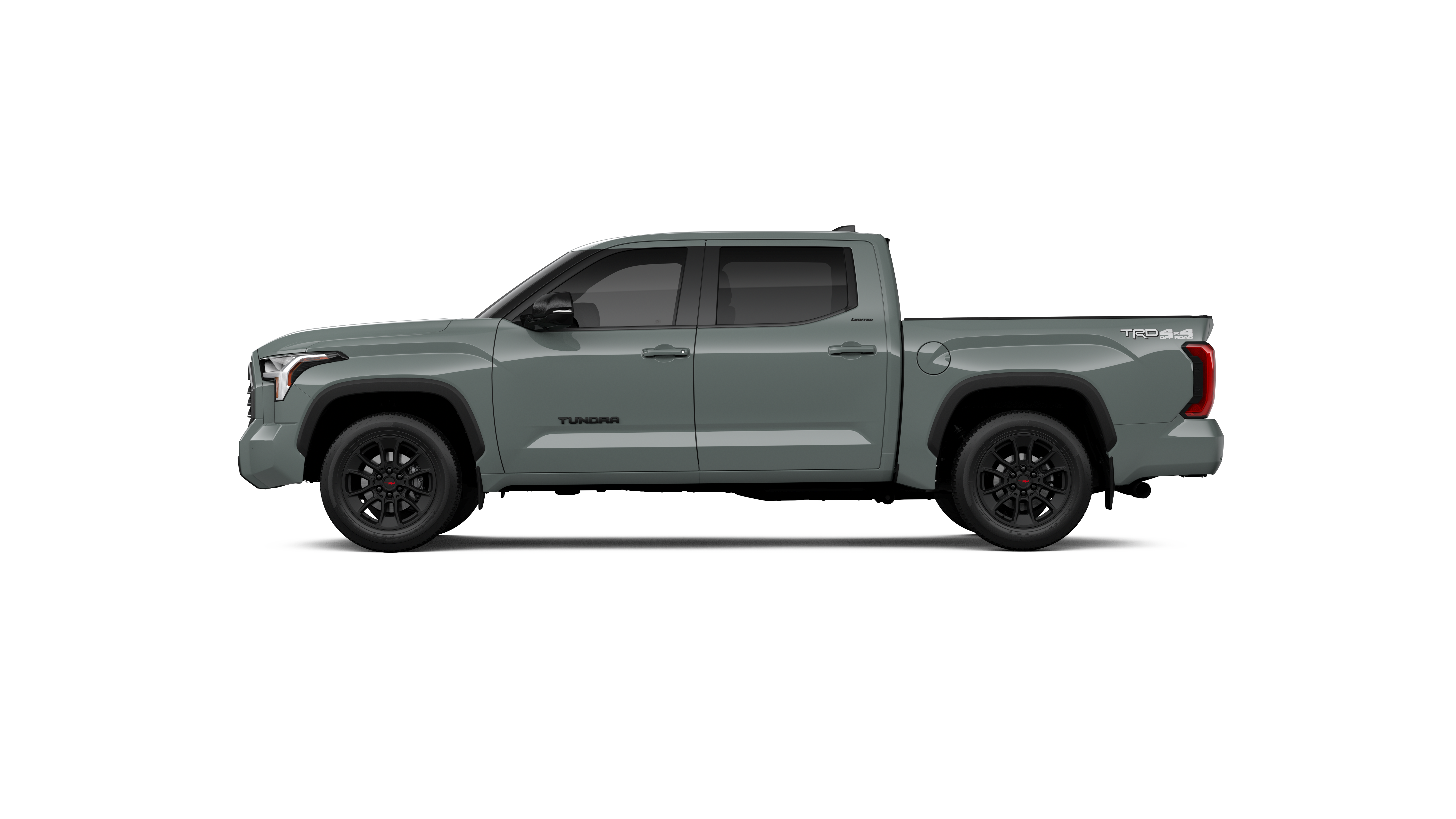 - Chrome "TUNDRA" and "LIMITED" door badges, door handles and window molding; color-keyed mirror caps and tailgate spoiler; gray-painted overfenders